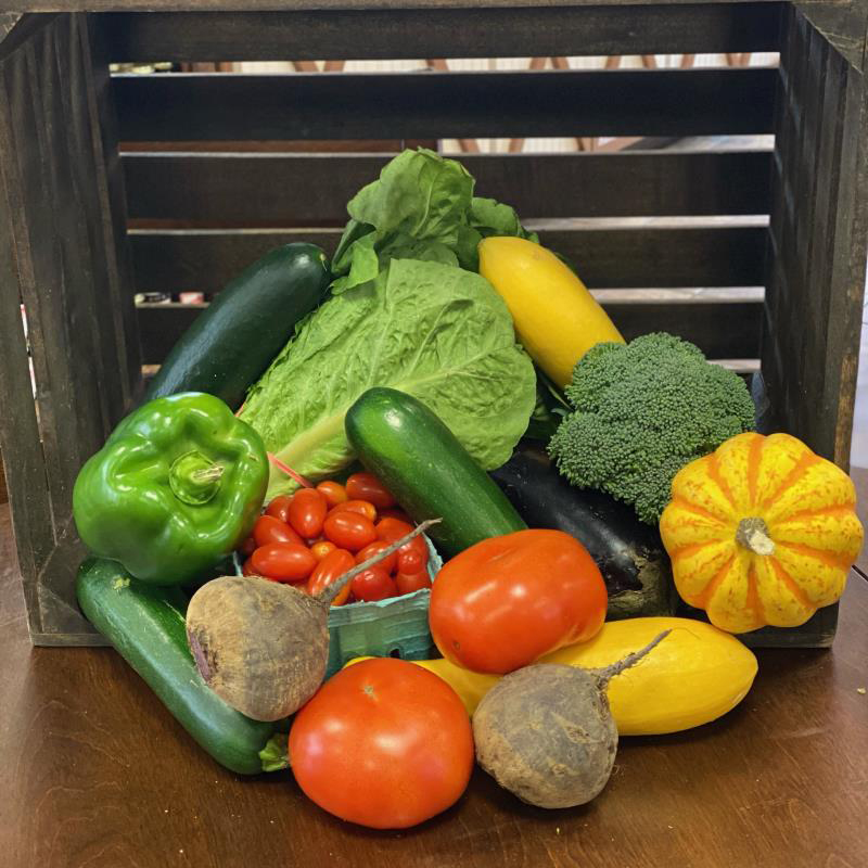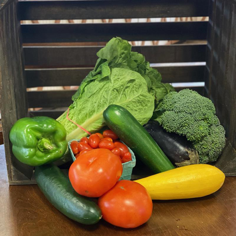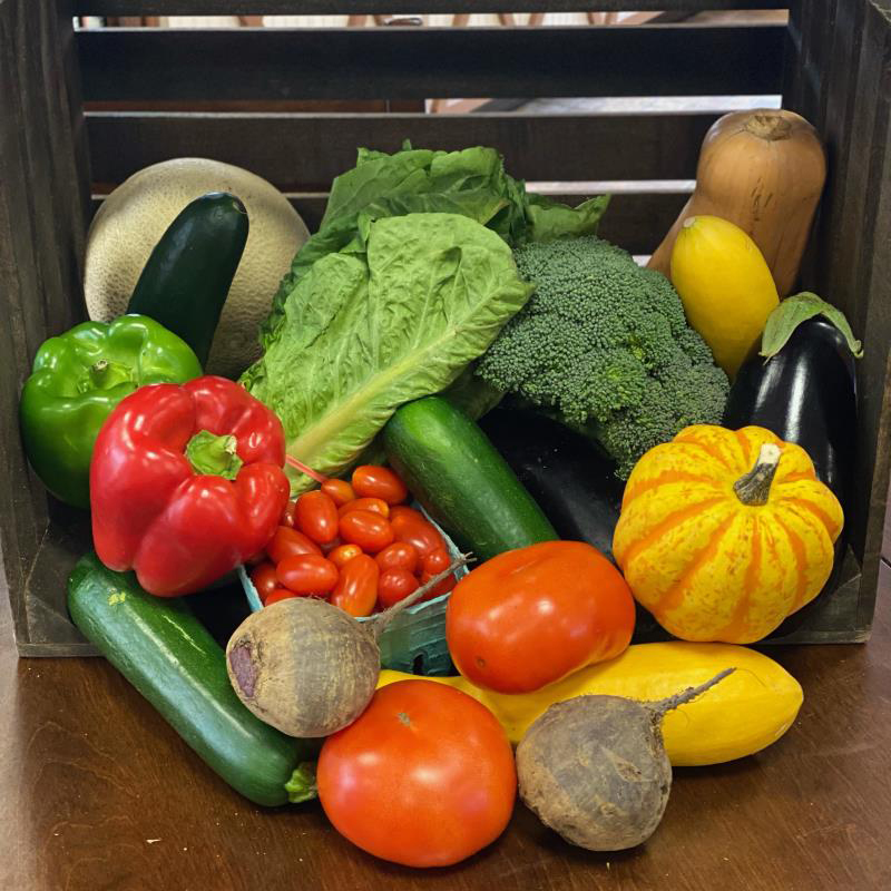 We grow all the items that will be in your box. Some of the items that you might receive would be tomatoes, zucchini, squash, kale, Swiss chard, assorted sweet peppers, cucumbers, pickles, collards, cabbage, beets, watermelons, cantaloupes, corn, assorted hot peppers, and assorted lettuces. Please note that not all of these will be available at the same time.